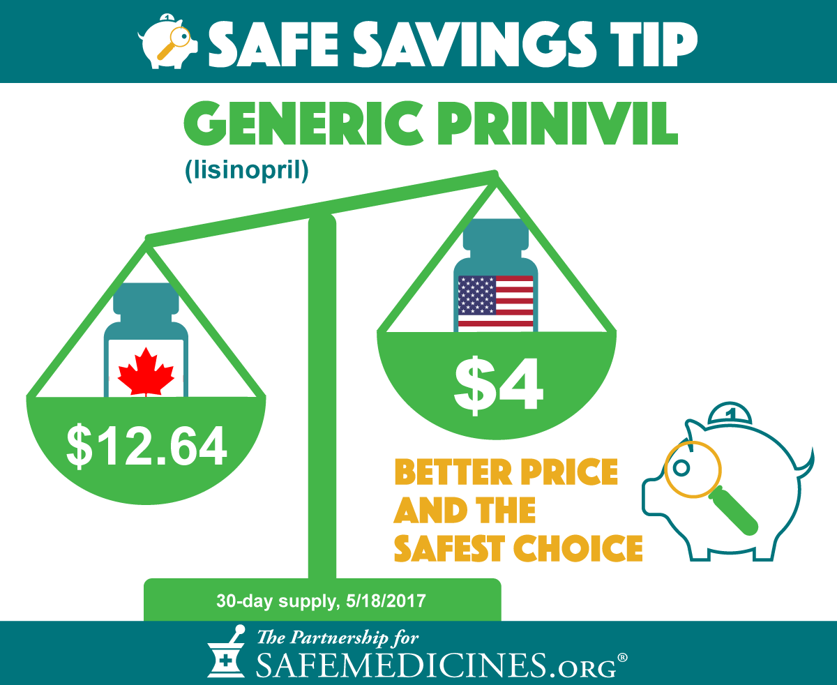 According to the Centers for Disease Control, about 75 million people, 1 of 3 U.S. adults, have high blood pressure and only 54% of these people have their high blood pressure under control. It is not surprising that lisinopril, the generic version of Prinivil that treats high blood pressure and heart failure, was the third most prescribed drug in the U.S. during the first quarter of 2016 according to LowestMed.com. What some people may find more surprising is that Americans pay one-third as much for the same medication as our Canadian neighbors.