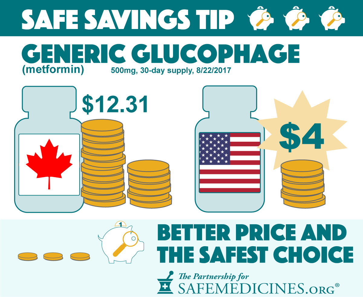 We wanted to compare how much a 30-day prescription for metformin would cost in the U.S. versus Canada. Using GoodRX.com’s search tool, the best cash price that we could find for a 30-day supply (60 pills in total) of 500mg metformin pills costs $4 at any Walmart or Kmart pharmacy. When we called and spoke with a pharmacist at a Walmart in Saskatoon, Saskatchewan, the price was $15.09 CAD. After converting to U.S. dollars and including the foreign exchange fee, the same prescription costs $12.31 in Canada, over three times as much American’s pay for the same medication.