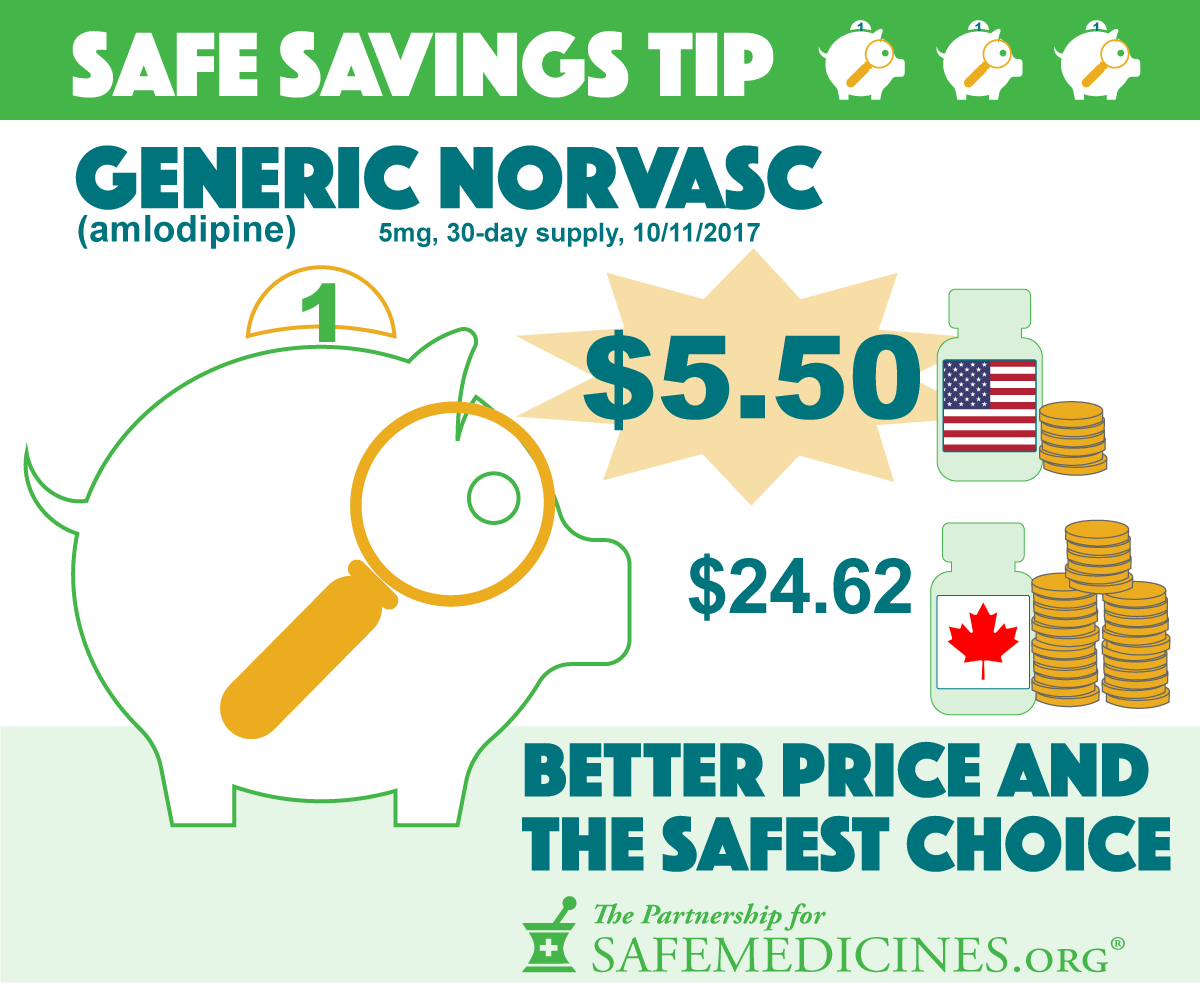 Safe Savings Tip: Generic Norvasc Is Over 75% Cheaper In The U.S. Than In Canada