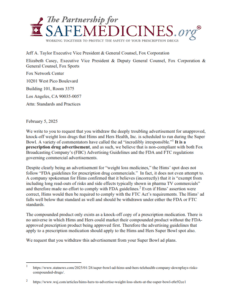 PSM sent the attached letter to Fox Broadcasting, calling on them to withdraw the deeply troubling and misleading Hims&Hers Super Bowl ad.