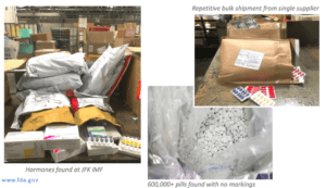 The Food and Drug Administration (FDA) in their report U.S. Food and Drug Administration and the International Mail Facilities (IMFs), describes the daunting job that Customs and Border Protection (CBP) faces when attempting to weed out counterfeit medications and packages containing illicit fentanyl. In 2017, IMFs received 275 million packages. Of these, 10,000 were screened by CBP, and of those 86% contained drugs. The investigation of a suspect package is incredibly time-consuming; an experienced FDA investigator might take as long as 20 minutes to process a package containing just on product.